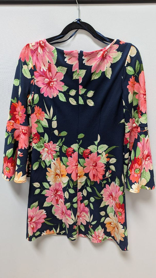 Eliza J Navy/Pink Floral Bell-Sleeve Dress