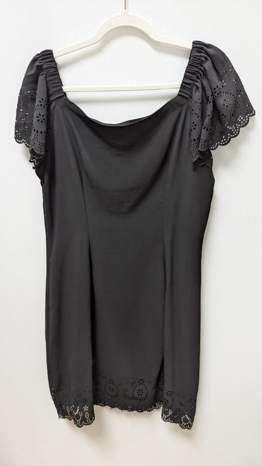 ELLE Black Lace-Sleeve & Hem Shift Dress