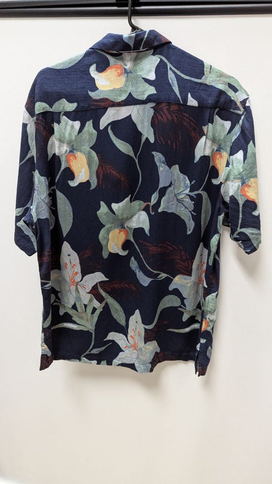 Caribbean Navy Blue Silk Hawaiian Button-Down Shirt