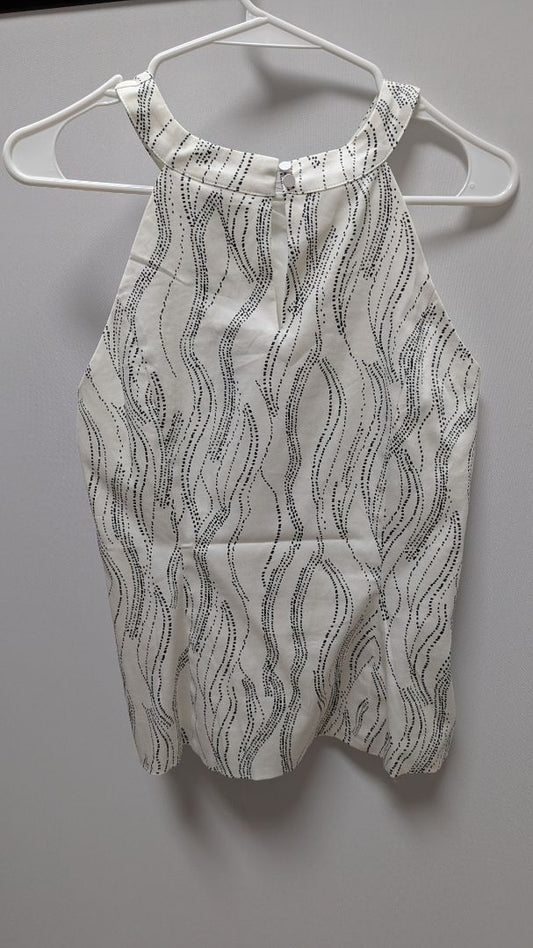 dressbarn Blue/Black Patterned Short-Sleeve Blouse