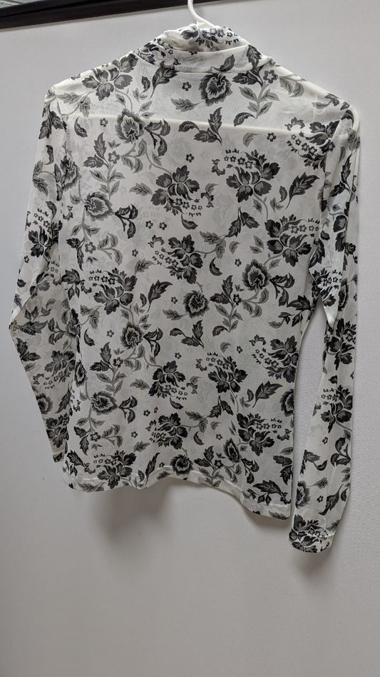 White House Black Market Moroccan Floral Ecru Mesh Turtleneck Blouse