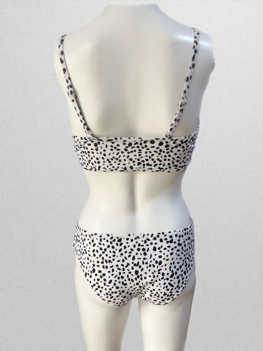 Black/White Sheer Asymmetrical Tankini Swim Set