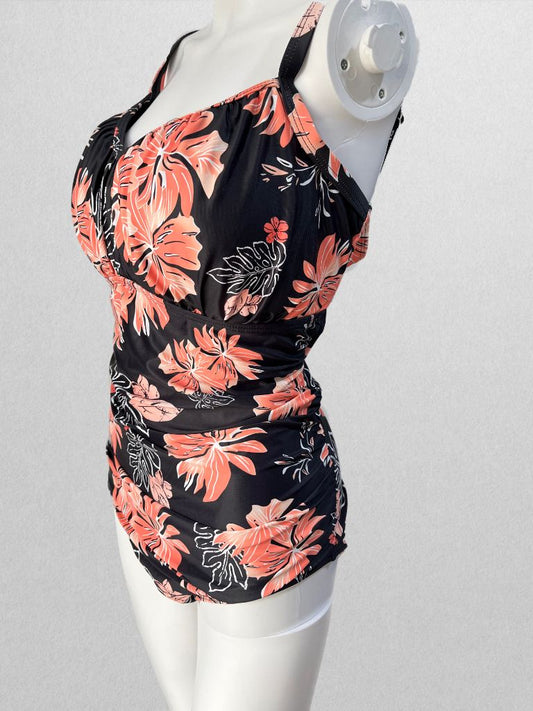 Black/Orange Palm Sweetheart Adjustable Strap Swim One Piece