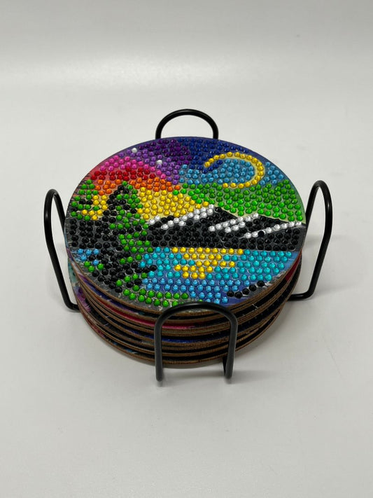 Handmade Rhinestone Coasters "Landscapes" 8 Piece Set