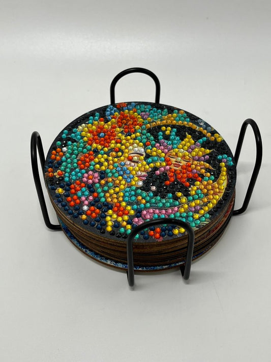 Handmade Rhinestone Coasters "Moon Landscape" 8 Piece Set