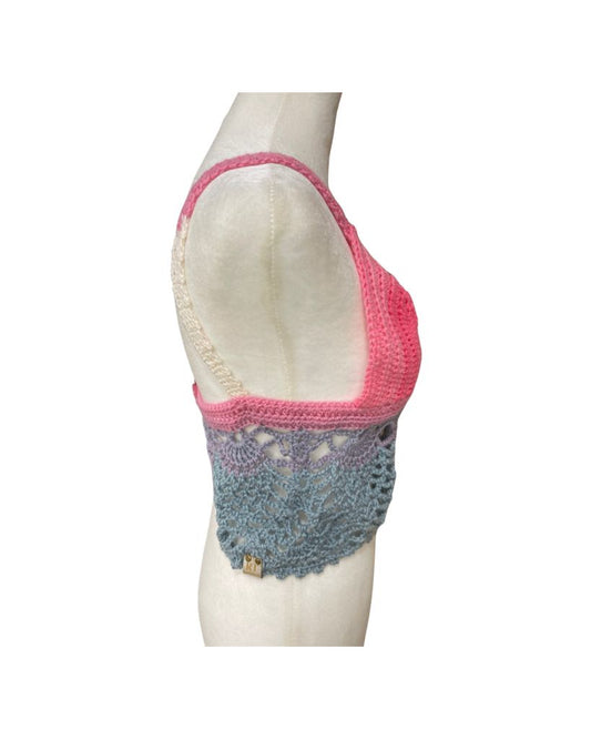 Recycled Threads Handmade Pink, Blue, White Crochet Bralette