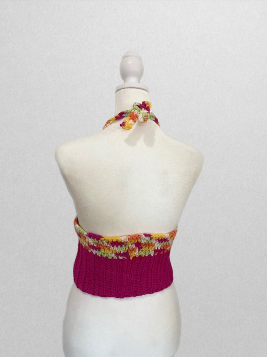 Recycled Threads Handmade Polka Dot Crochet Halter Top