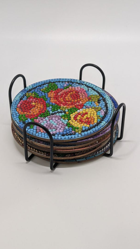 Handmade Rhinestone Stained-Glass Flowers Coaster Set