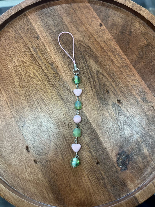 Green/Pink Dangle Beaded Wire Loop Phone Charm