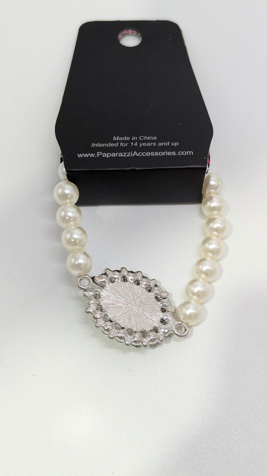 Paparazzi White/Black Faux-Pearl Medallion Bracelet