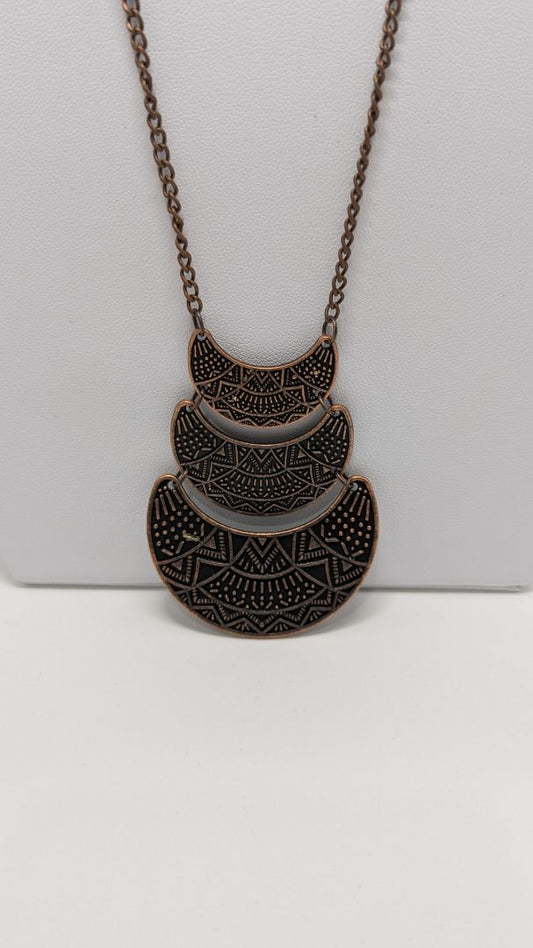 Paparazzi Copper 3 Rounded Plates Longline Necklace & Earrings Set