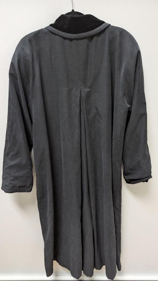 Black Vintage Velvet-Collar Button-Down Trench Coat