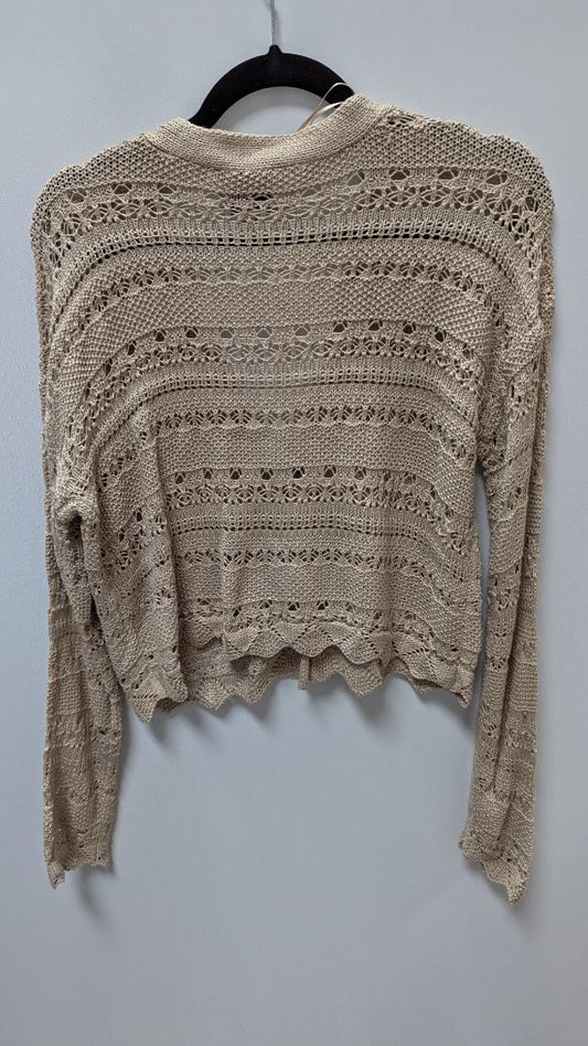 Maurices Taupe "Crocheted" Open Front Short Sleeve Cardigan