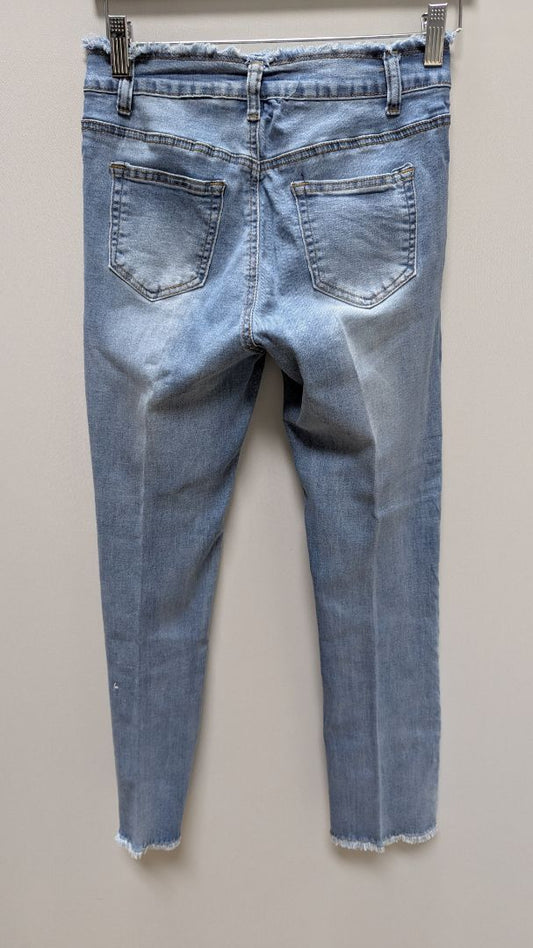 Bamboo Light Wash Lace-Fly Straight Jeans
