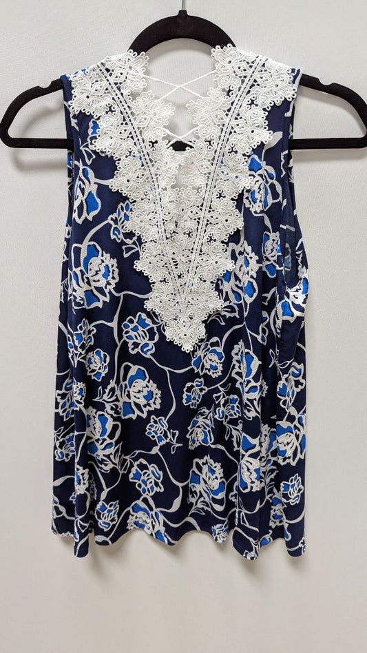 AMANA Dark Blue/White Lace-Back Sleeveless Blouse