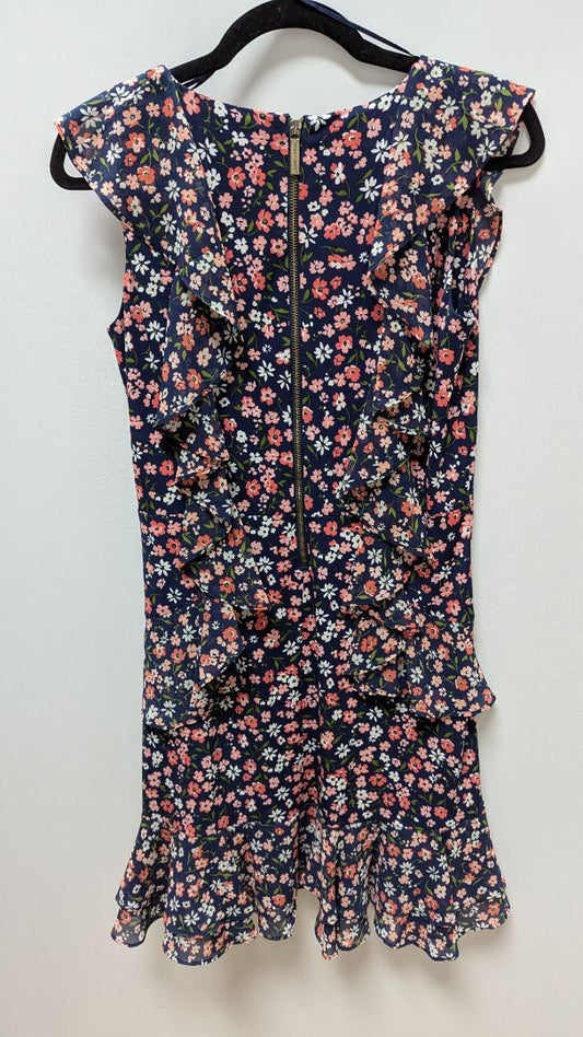 Michael Kors Navy/Pink Floral Ruffled Mini Dress