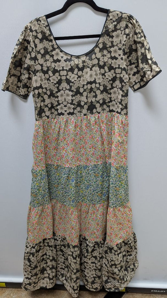 natural life Grey/Multicolor Floral Tiered Maxi Dress