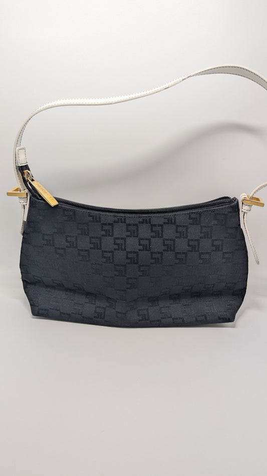Montblanc Black/White Leather Hobo Shoulder Bag Purse