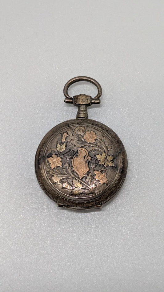 Antique Silver Key-Wound Engraved Pocket Watch