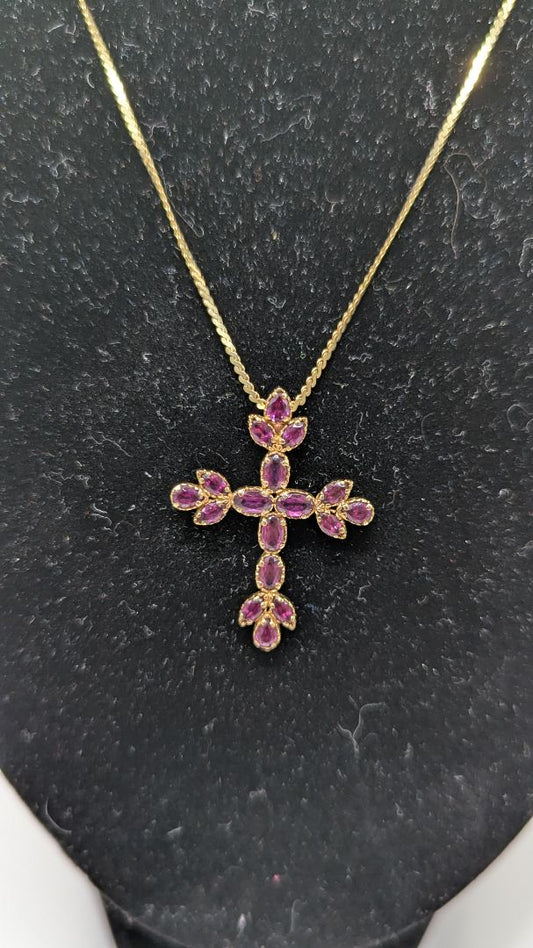 Gold/Purple Gemstone Cross Necklace