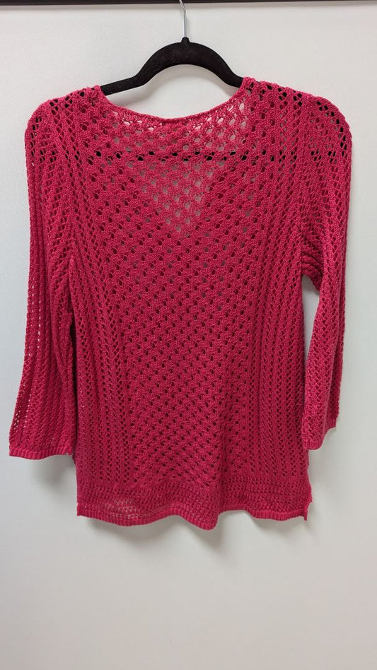 Chico's Deep Pink Crochet Knit V-Neck Sweater
