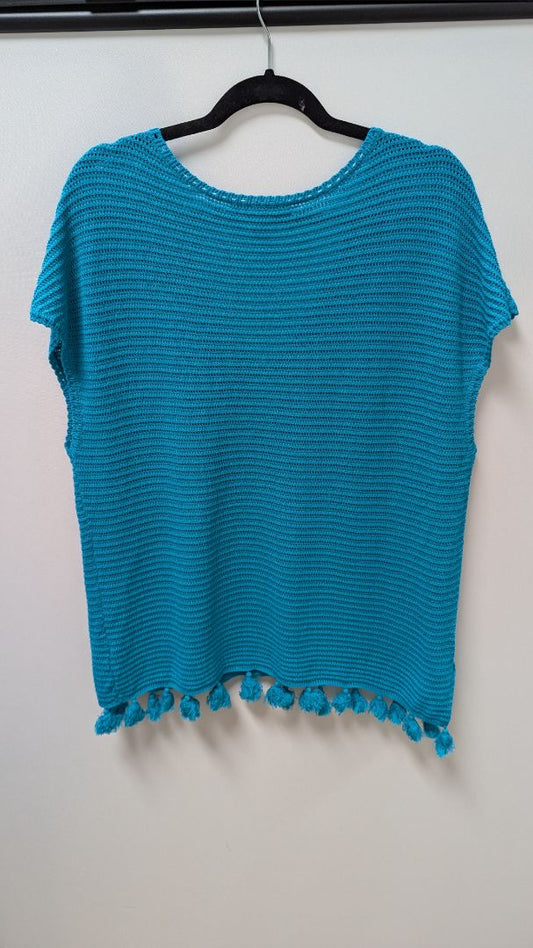 Tommy Bahama Turquoise Fringed Sheer Knit Blouse