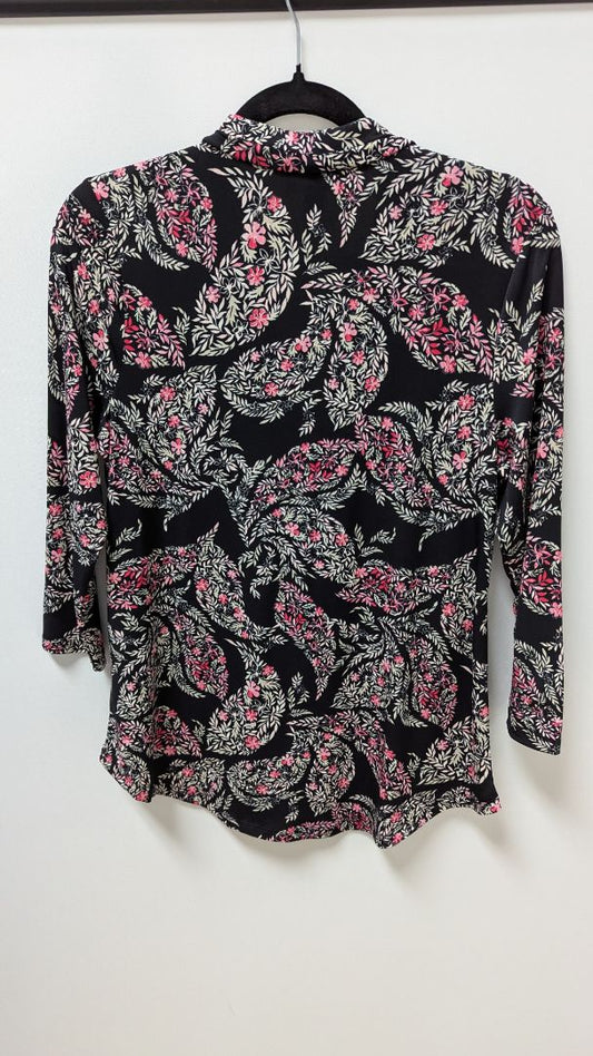 Style & Co Black Floral Pintuck Ruffle Blouse