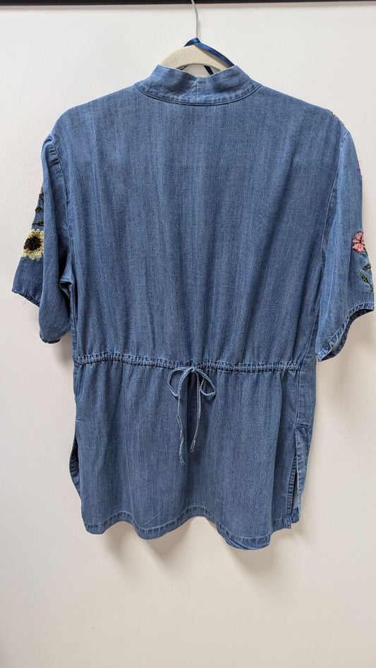 Zara Basic Navy Floral Cropped Sleeve Blazer Jacket