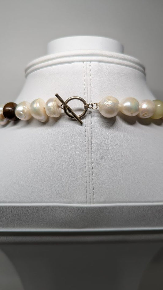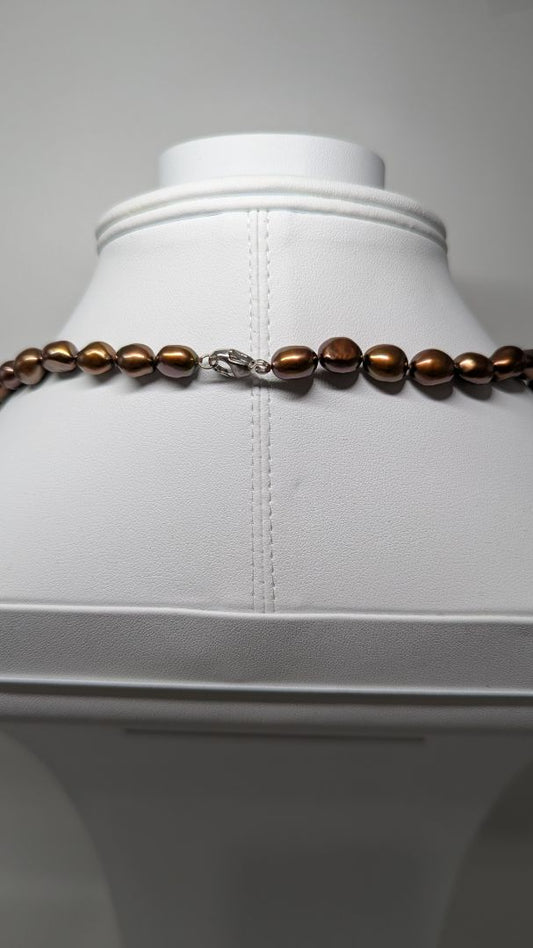 Brown Pearl Beaded Necklace with Silver Clasp