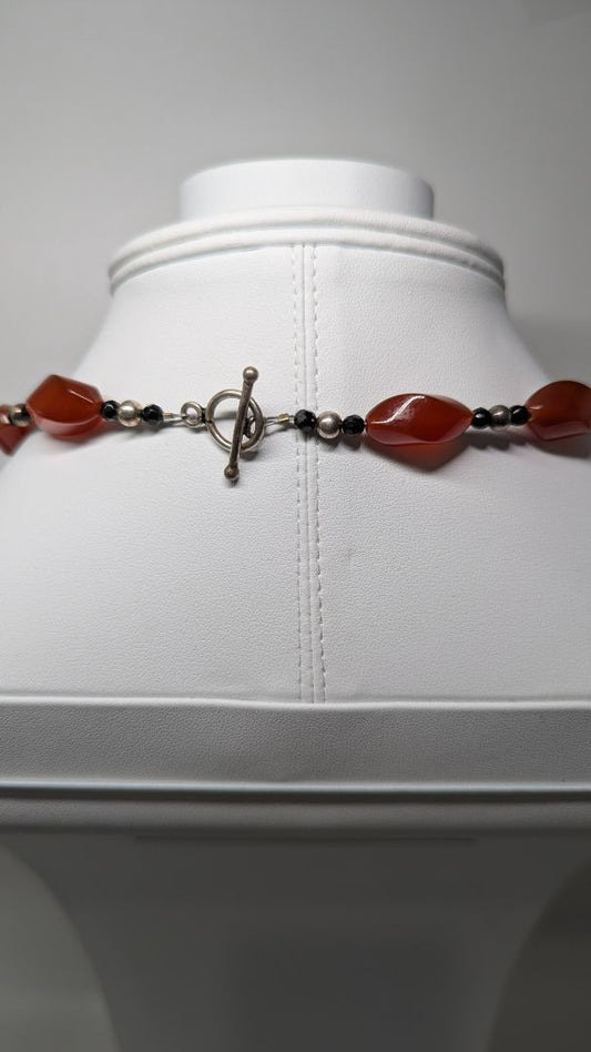 Burgundy/Black Beaded Necklace with Ring Clasp