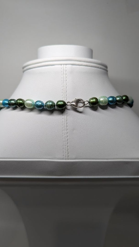Blue & Green Beaded Necklace with Clasp