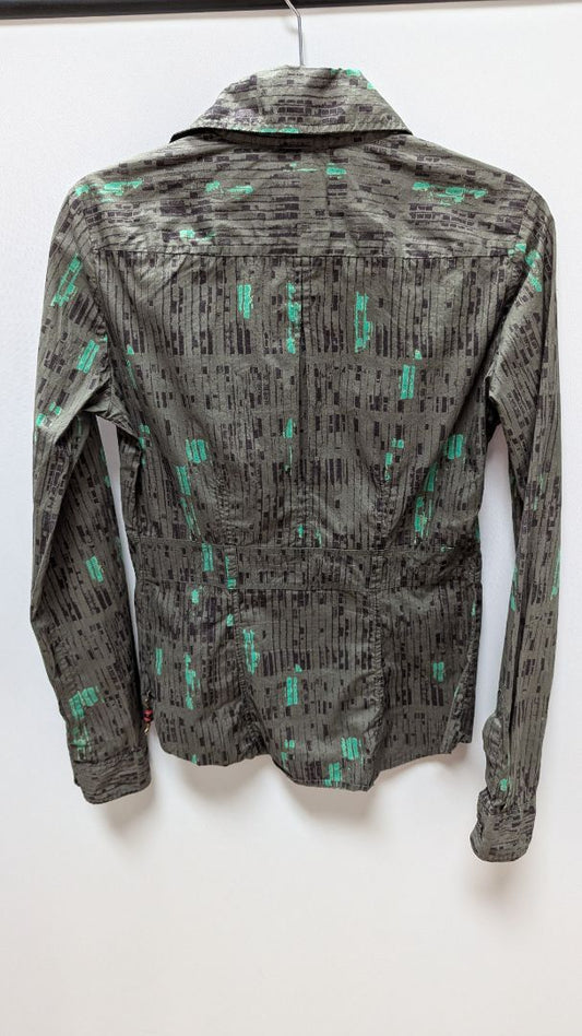 DIESEL Dark Grey/Turquoise Printed Button-Down Blouse