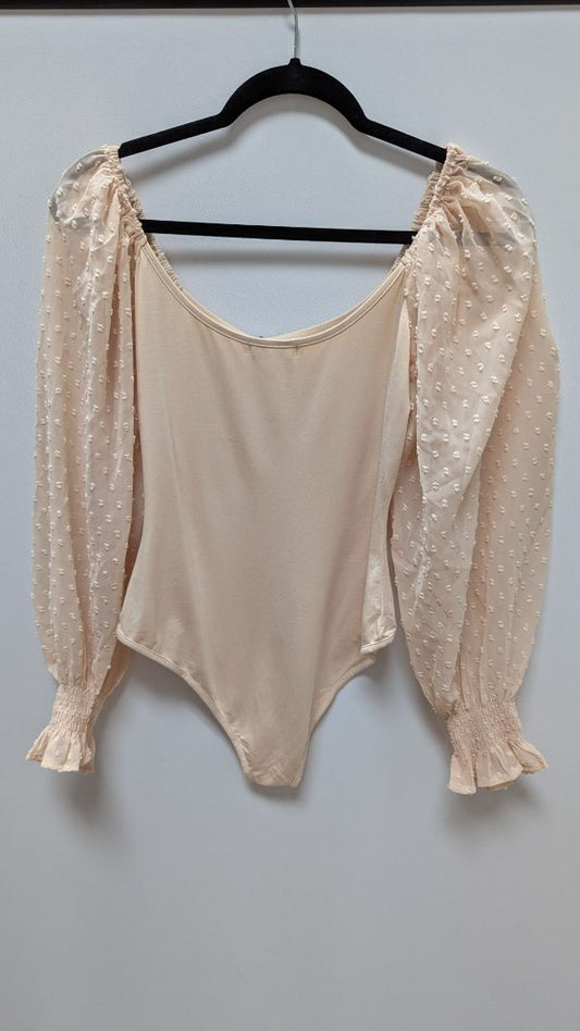 zeagoo Light Pink Sheer Long-Sleeve Bodysuit