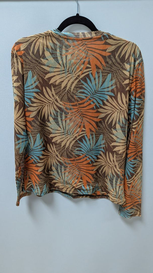Orange Floral Mesh Long-Sleeve Blouse