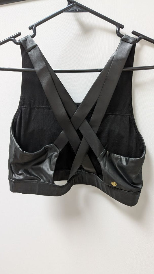 savvi Black Faux-Leather Cross-Back Sports Bra