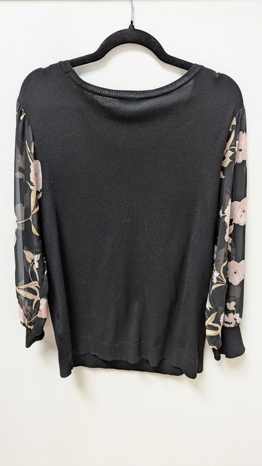 INC Black/Pink Floral Sheer-Sleeve Sweater