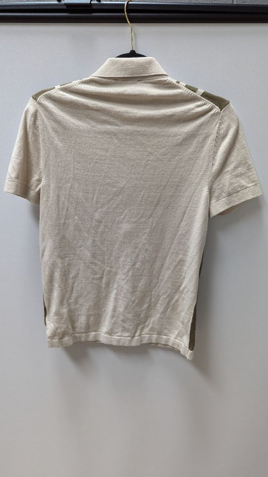 Express Men's Beige/Dark Green Striped Button Up Shirt