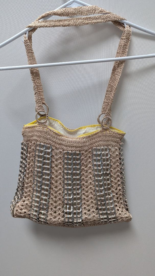 Beige/Silver Crochet Pop-Tabs Tote Bag Purse