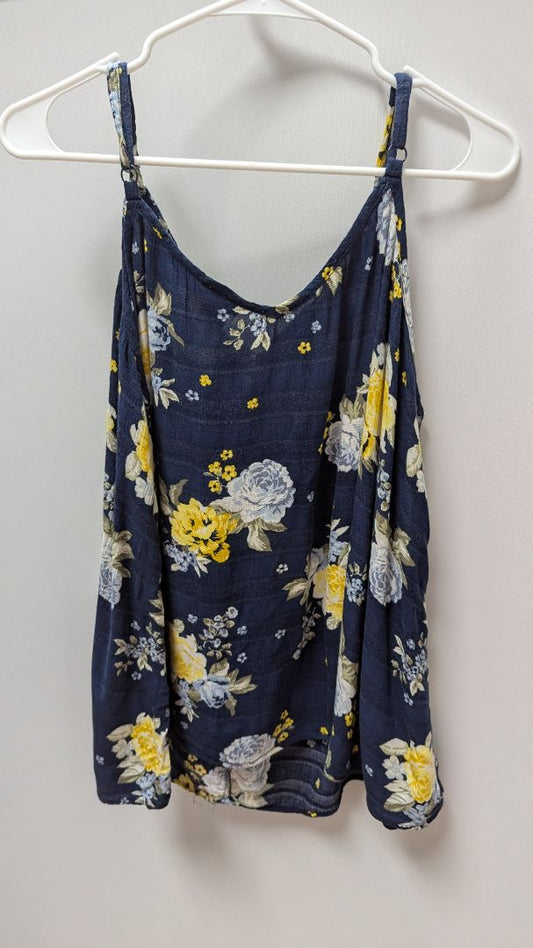 Torrid Navy/Yellow Floral Tie-Neck Tank