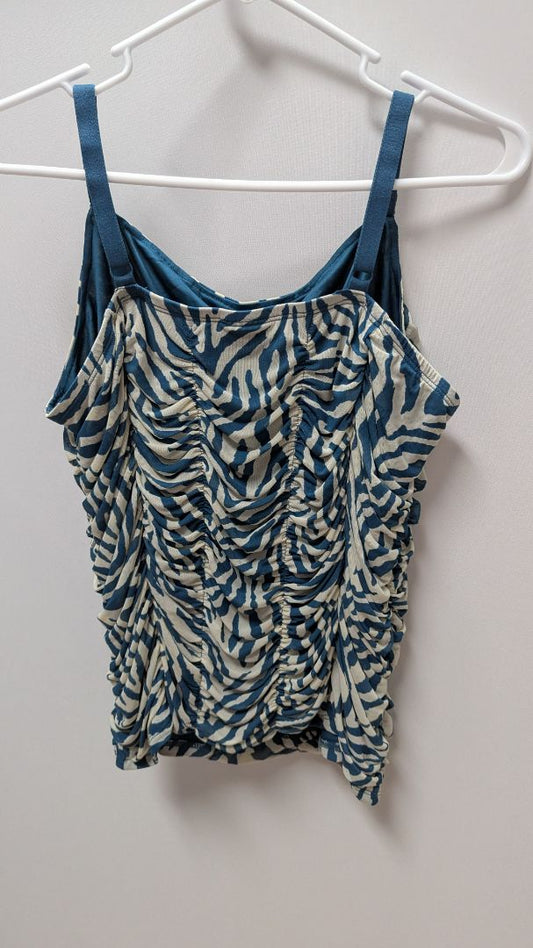 Torrid Blue/Cream Zebra Striped Ruched Tank