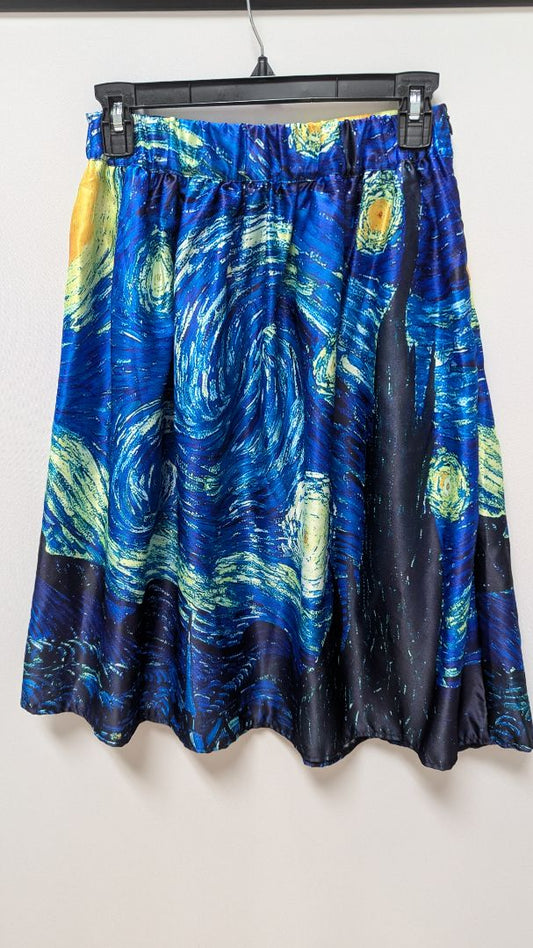 Blue Swirl Artistic Flared Midi Skirt