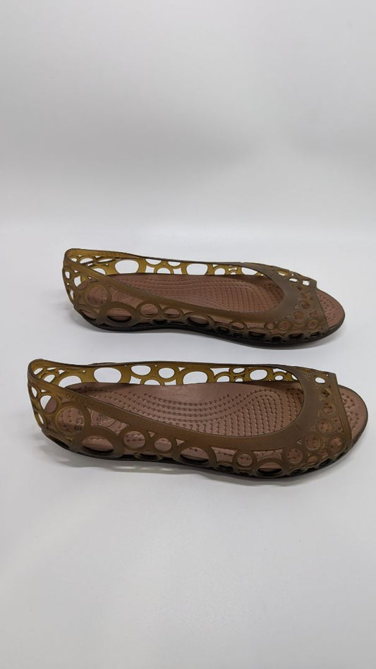 Crocs Brown Adrina III Open-Toe Jelly Slip-On Flats
