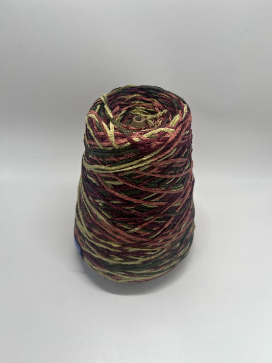 Astro Dye Works Inc. Wine, Taupe, & Green Rayon Chenille Yarn Cone