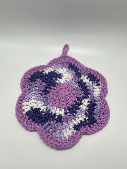 Purple Flower Crochet Cotton Dishcloth | Handmade