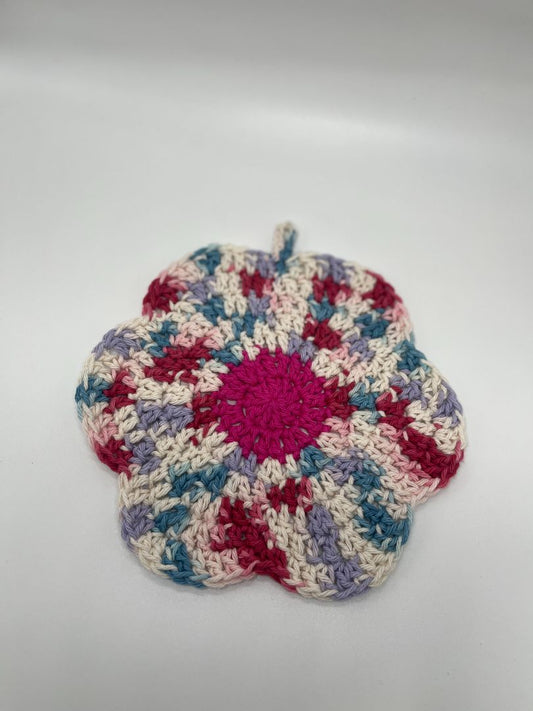 Pink Center Flower Crochet Cotton Dishcloth | Handmade