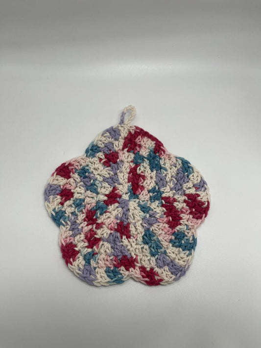 Spring Flower Crochet Cotton Dishcloth | Handmade