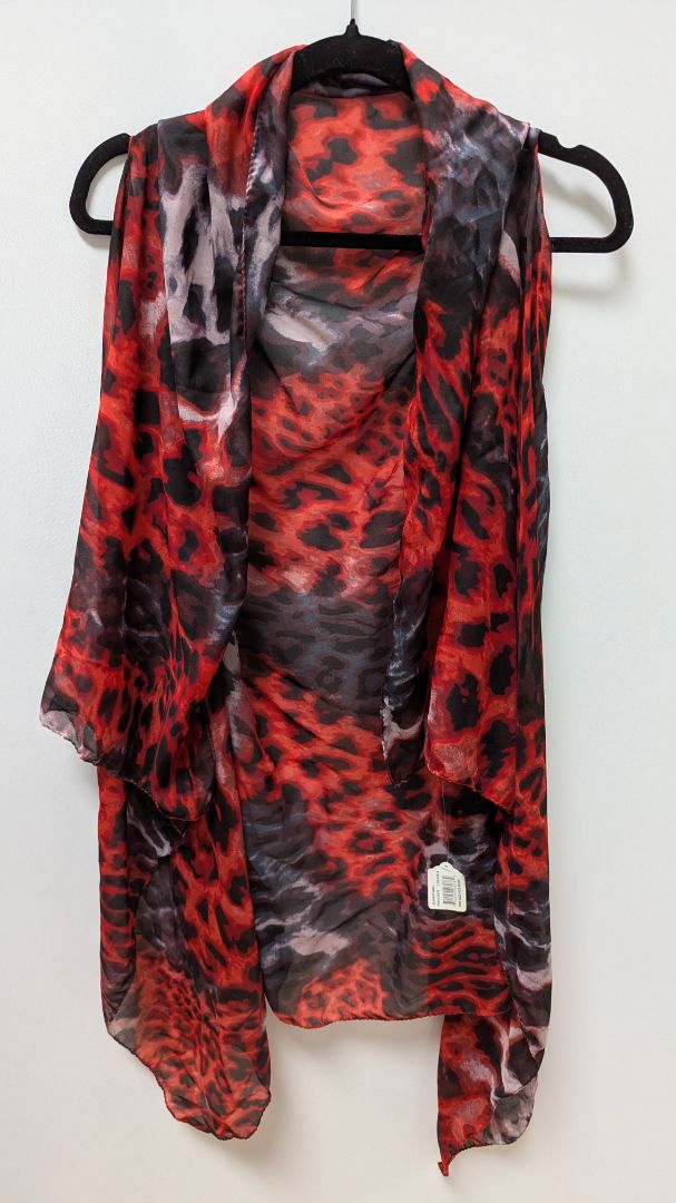 Accents by Lavello Red/Black Patterned Vest Scarf. New with tags. It features convertible ways t owear and it is sheer.