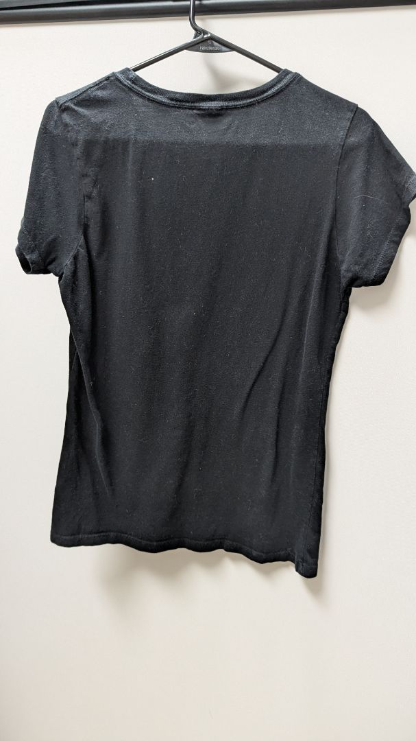 Beetlejuice Black "Strange" Graphic T-Shirt. Size Large. Well-worn, with some wear to the material; in overall good condition. It has a graphic on the front, short sleeves, and a rounded neckline.