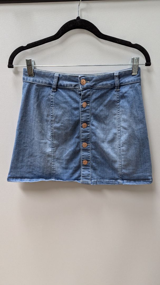 CELEBRITY PINK Light Wash Button Up Jean Skirt. Size 3/26. Gently used, with belt loops and rose gold buttons.