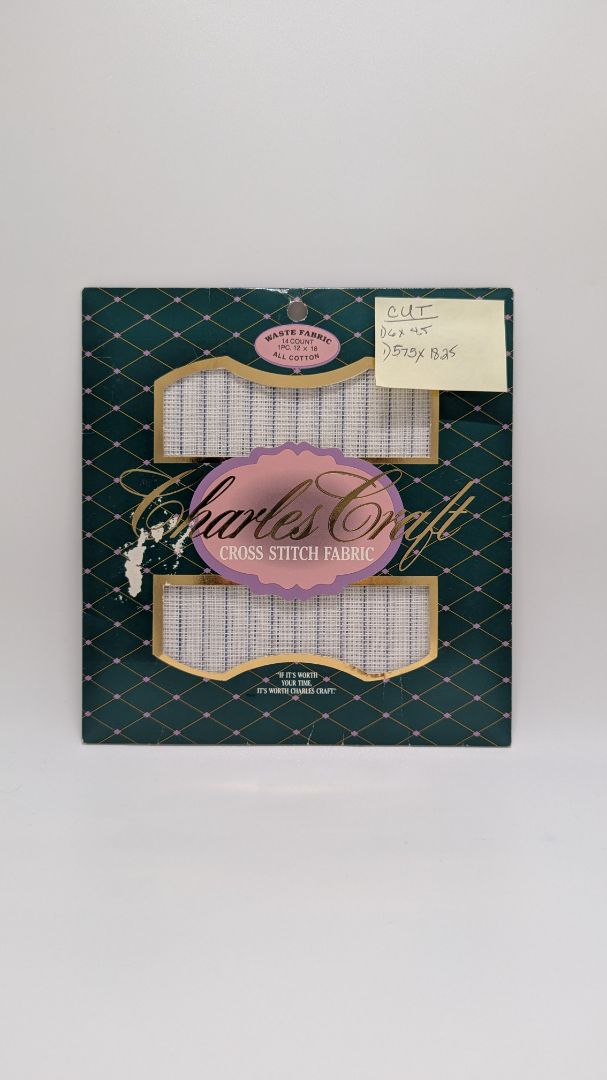 Charles Craft PRECUT White/Blue Cotton Cross-Stitch Fabric. Precut, with 4.5"x6" remaining.